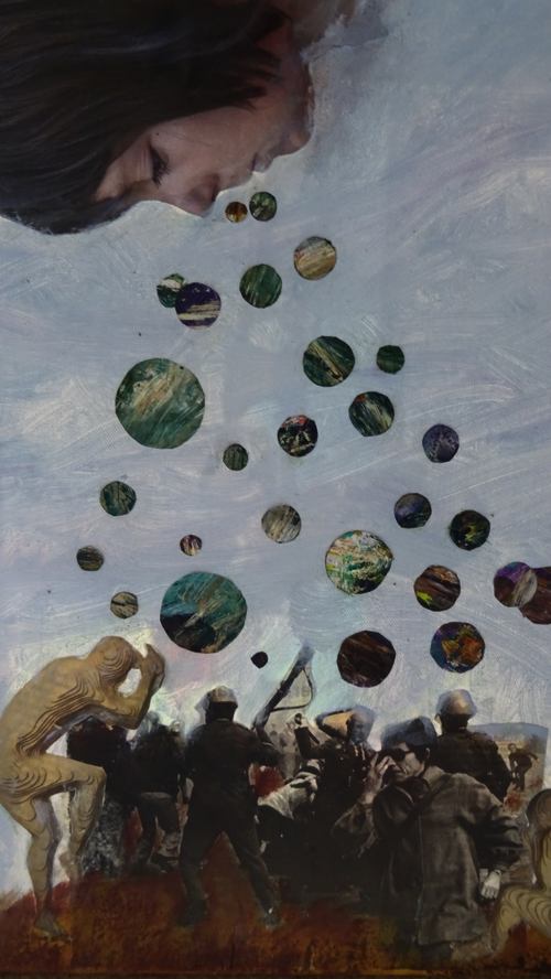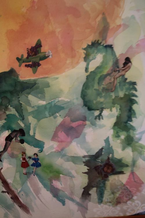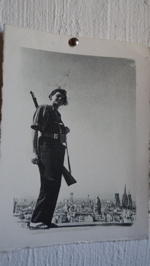 El taller de una habitante de Calafou para el desarrollo de su trabajo artÃstico a través de la combinación de diferentes técnicas: acuarela, grabado, fotografÃa, oleo, transfer collage y video.