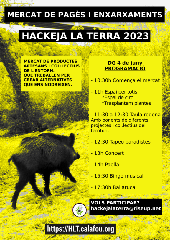 Per això, aquest any des del Hackeja La Terra (HLT) fem una crida a totes aquelles que treballeu per descolonitzar el futur i allunyar-lo de les urpes del capitalisme més salvatge, ja sigui a través de les tecnologies apropiades, la sobirania alimentà ria, la preservació de l'entorn, el transfeminisme, la resignificació de la memòria o d'altres lluites anticapitalistes. Una crida a imaginaris radicals, receptes i remeis amb els quals remeiar la toxicitat industrial i construir juntes els futurs que volem.